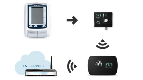 Plug the wireless connector into its matching health meter. Place the motion and access sensors throughout your house. Plug the Gateway in and connect it to your Internet router.