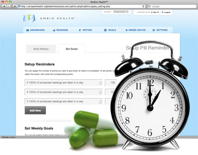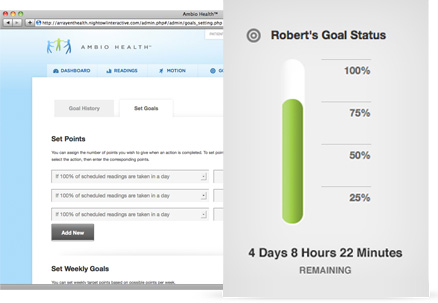 Ambio Health allows you and your care circle to establish rewards for achieving your goals (taking scheduled readings, maintaining readings within target thresholds, or attaining a target weight.)